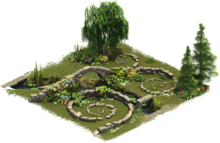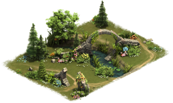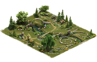 Es handelt sich um ein Set, an dem du die verschiedenen Teile aneinander anschließen kannst. Durch das Anschließen der verschiedenen Teile bekommst du einen Bonus. In diesen Fall handelt es sich dabei um: (Majestätisches Kitz, Steinskulptur, Trauerweide, Feenringe, Mondtor).